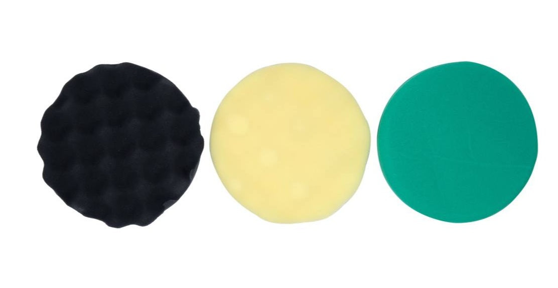 Ekscentrinis poliruoklis komplektuojamas 3 skirtingo kietumo kempininiais poliravimo diskais.