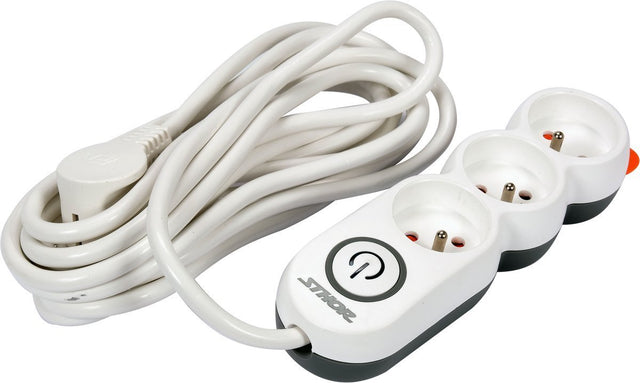 EKO+ klasės įžemintas buitinis prailgintuvas STHOR 72352 - trijų gyslų 1.5mm2 kabelis su trimis lizdais ir bendru mėyno apšvietimo jungikliu visam blokeliui, skirtas naudoti namuose, biure ar garaže. Šio prailgintuvo pagalba galima lengvai maitinti buitinius prietaisus, kaip virduliai, lygintuvai, dulkių siurbliai, virtuviniai kombainai ir panašiai. Prailgintuvą galima lengvai pritvirtinti prie stalviršio ar sienos. PVC kabelio izoliacija atspari mechaniniams pažeidimams, daugumai tirpiklių, žemai temperatūrai. Korpusas pagamintas iš aukštos kokybės ABS plastiko. Apsauga nuo vaikų.