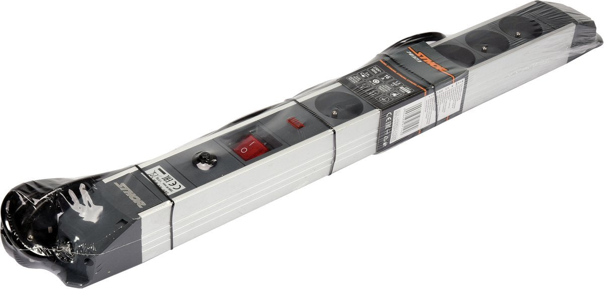 EKO+ klasės įžemintas biuro prailgintuvas STHOR 72373 - trijų gyslų 1.5mm2 varinių laidų kabelis su šešiais lizdais ir bendru jungikliu visam blokeliui, skirtas naudoti namuose, biure ar garaže. Tinka E ir F tipų kištukai. Šio prailgintuvo pagalba galima lengvai maitinti didelę biuro techniką ir buitinius prietaisus, kaip stalinius kompiuterius, monitorius, televizorius ir panašiai. Prailgintuvą galima lengvai pritvirtinti prie stalviršio ar sienos. PVC kabelio izoliacija atspari mechaniniams pažeidimams, daugumai tirpiklių, žemai temperatūrai. Korpusas pagamintas iš anoduoto aliuminio.