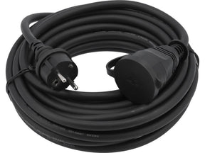 Construction and workshop extension cord with dust and splash-proof socket. The cable in a sheath with an increased diameter made of chlorinated polyethylene (CPE) will work both indoors and outdoors. It is resistant to oils, acids, most solvents and sunlight. It does not stiffen in the cold. Does not spread fire. It is characterized by high aging resistance. The increased insulation diameter improves puncture resistance parameters and increases resistance to mechanical damage.