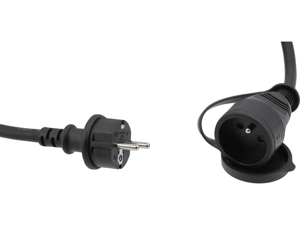 Construction extension cord with dust and splash-proof socket. The cable in a chlorinated polyethylene (CPE) sheath will work both indoors and outdoors. It is resistant to oils, acids, most solvents and sunlight. It does not stiffen in the cold. Does not spread fire. It is characterized by high aging resistance.