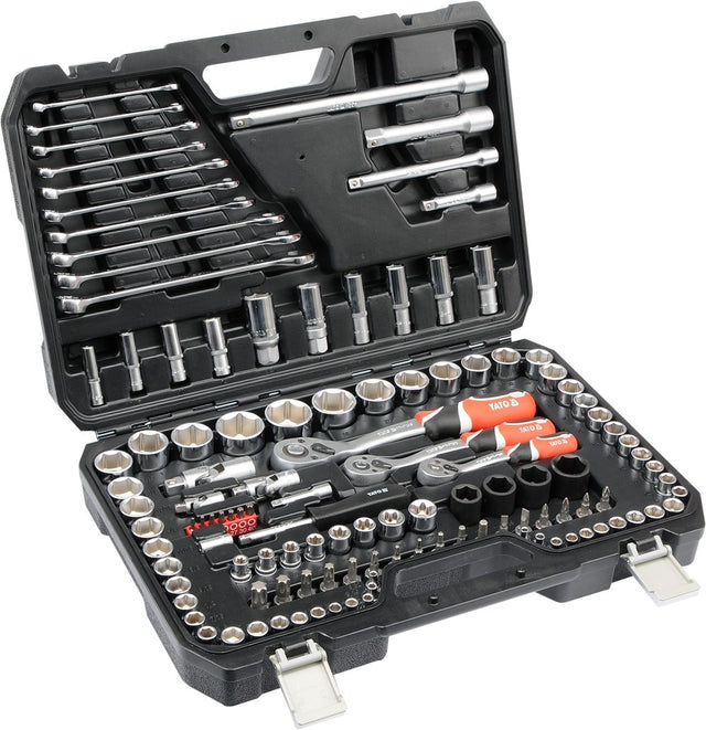 Galvučių ir raktų komplektas | 1/4" + 3/8" + 1/2" | 120 vnt. (YT-38801) yra užsakomoji prekė, ją išsiųsime per 3-4 savaites.