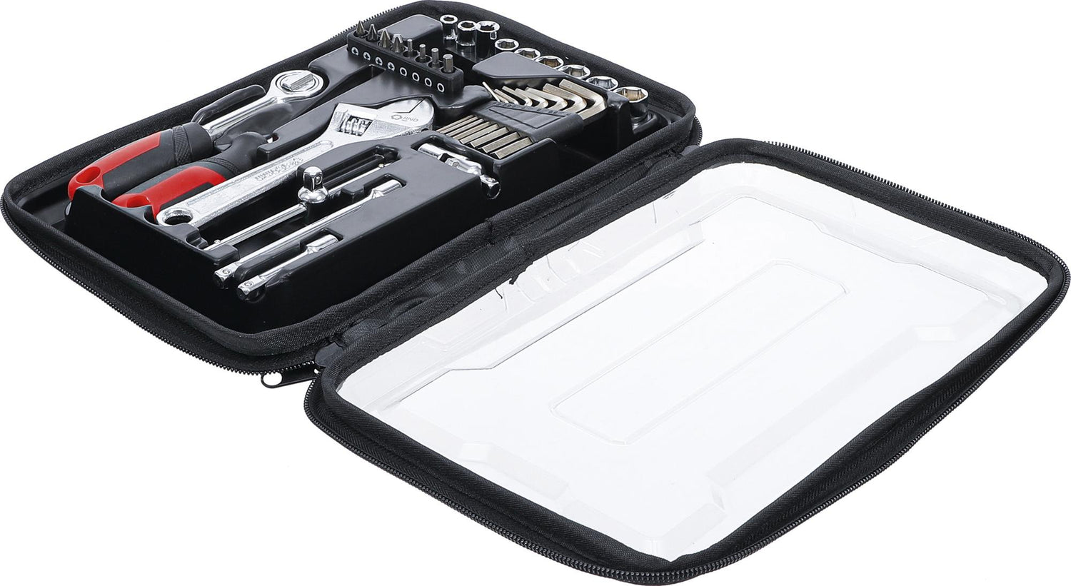 DIY+ klasės įrankių rinkinį iš BGS Technic 7067 sudaro 32 vnt. įrankių ir jų priedų. Komplekte yra 1/4" šešiakampių HEX galvučių rinkinys, reversinis terkšlinis raktas, reguliuojamas veržliaraktis ir kiti įrankiai. Įrankiai patogiai sudėlioti užsegamoje dėtuvėje. Šios konfigūracijos įrankių rinkinys tinka smulkiems surinkimo darbams bei daugeliui kitų darbų namuose ar dirbtuvėse.