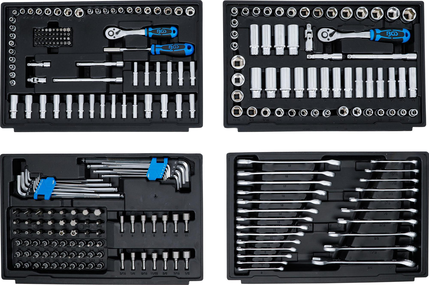Įrankių rinkinys | 6,3 mm (1/4") / 10 mm (3/8") / 12,5 mm (1/2") | Metriniai ir colių dydžiai | 300 vnt. (74000)