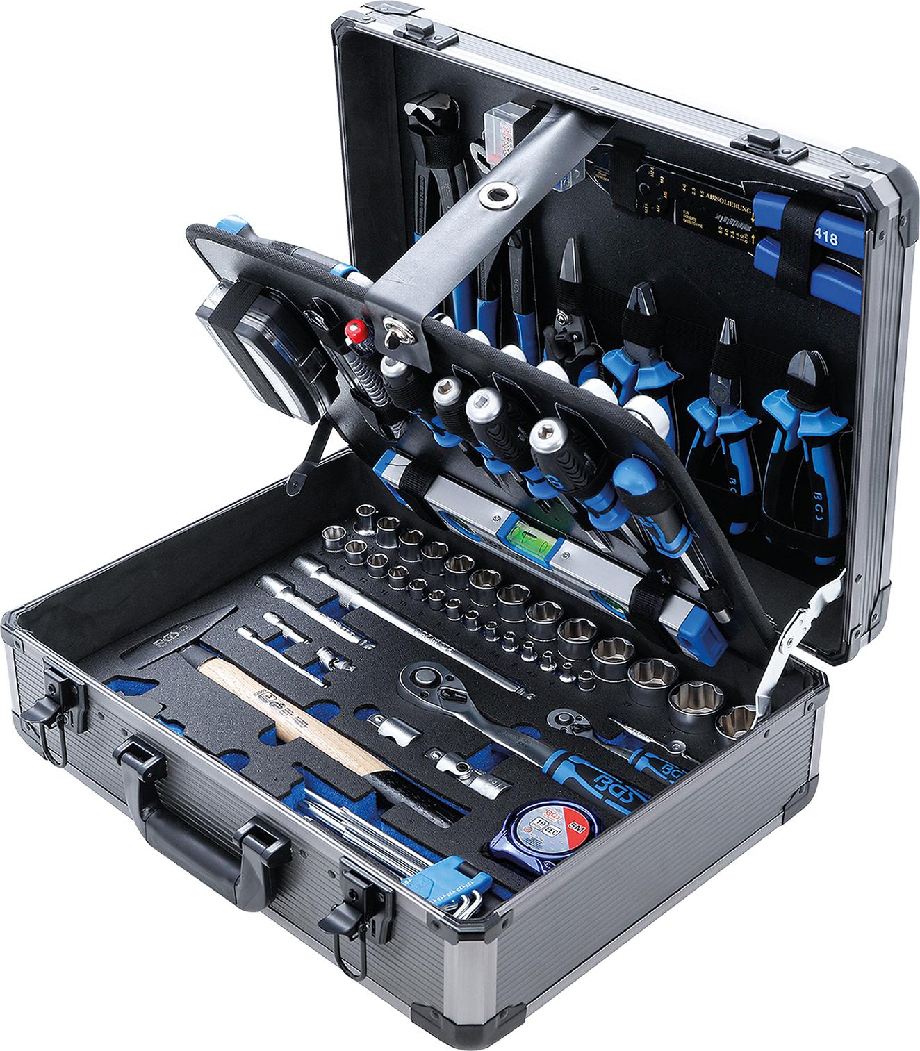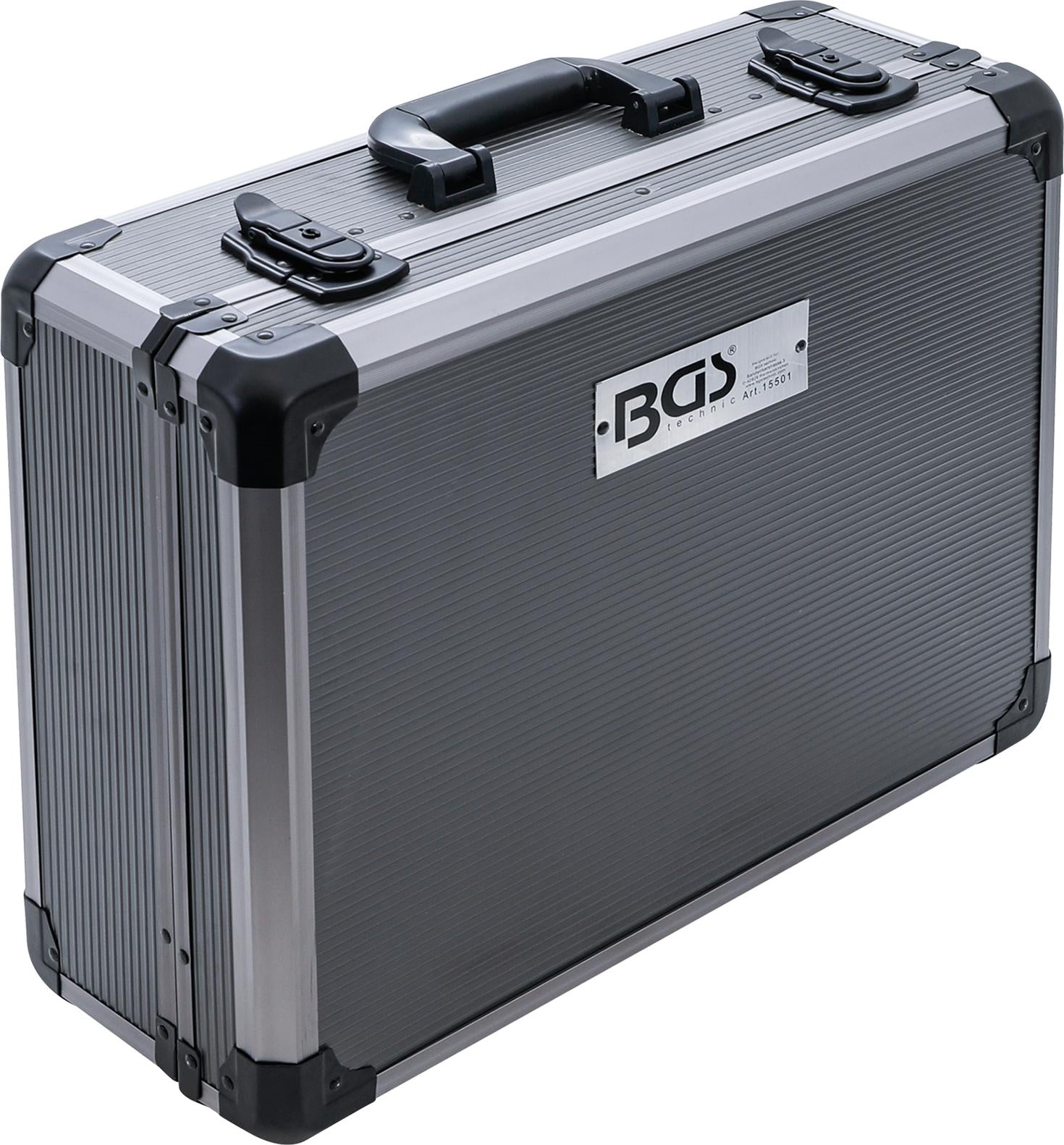 Profesionalų įrankių rinkinį BGS Technic 15501 sudaro 149 vnt. PRO+ klasės įrankių, pagamintų iš chromo vanadžio (CrV) plieno lydinio. Super Lock banguoto profilio (wawe profile) galvutės pasižymi mažesniu praslydimu, geriau priglunda ir leidžia sukimo momento jėgą nukreipti į veržlės sienelę. Įrankiai patogiai išdėstyti tvirtame aliuminio lagamine, atitinka DIN (Deutsches Institut für Normung - Vokietijos standartizavimo instituto) standartus. Šios konfigūracijos profesionalių įrankių rinkinys tinka surinkimo darbams, automobilių remontui bei daugeliui kitų darbų namuose ar dirbtuvėse.