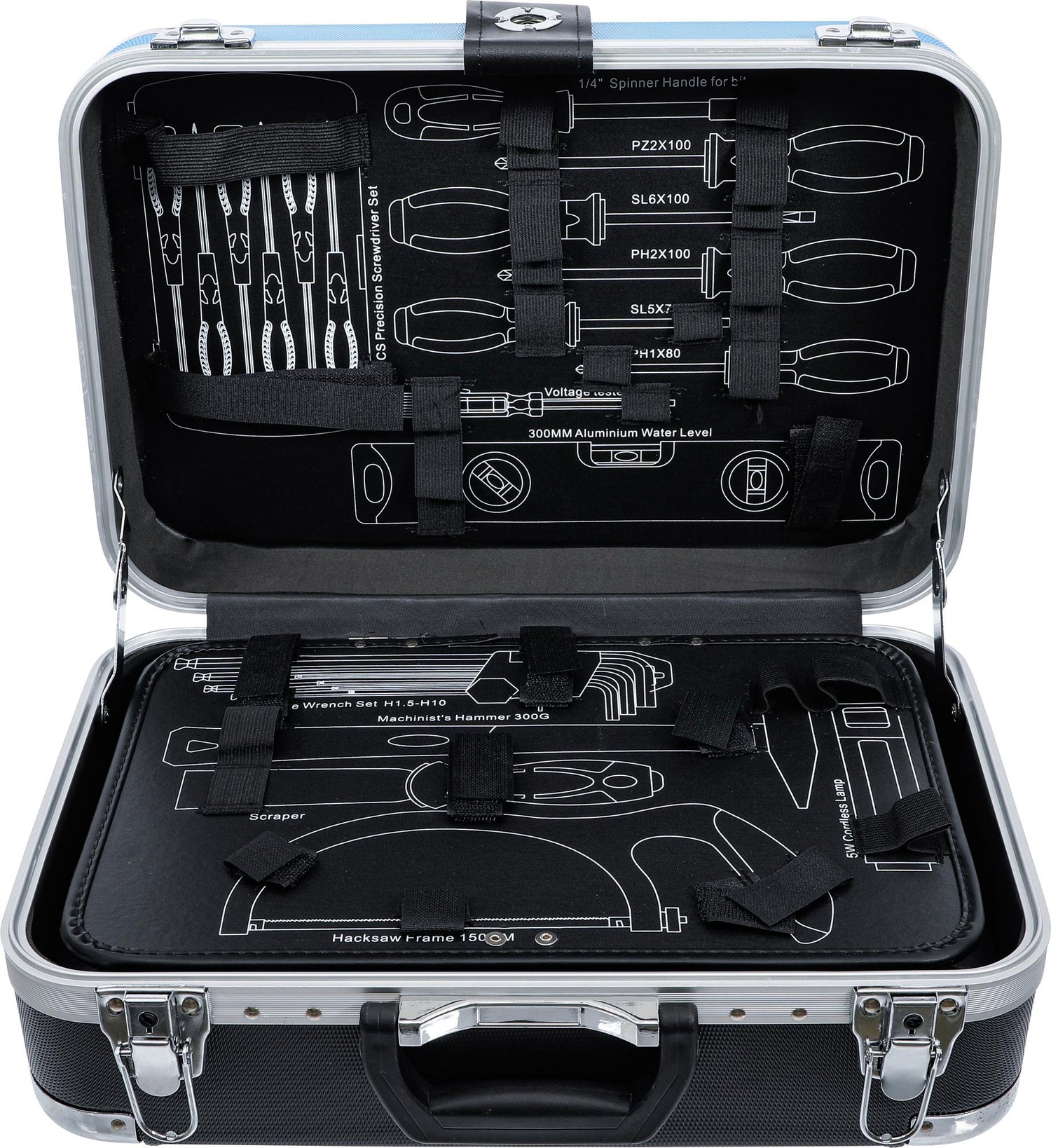 during transport all parts contained in the case are well protected and secured in their places by elastic straps