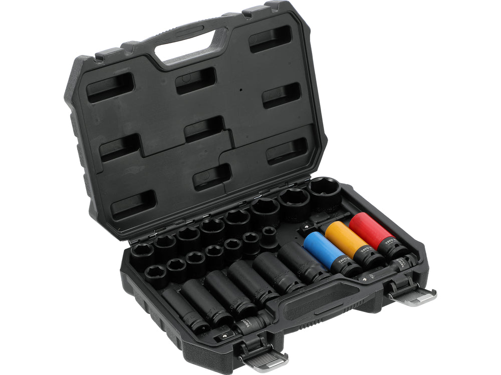 1/2 impact sockets (short): 10, 12, 13, 14, 15, 16, 17, 18, 19, 21, 22, 24, 27, 30, 32 mm
