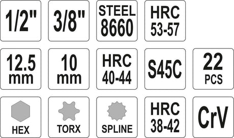 Generatoriaus remonto komplektas | 12,5 mm (1/2") | 13 vnt. (YT-0421)