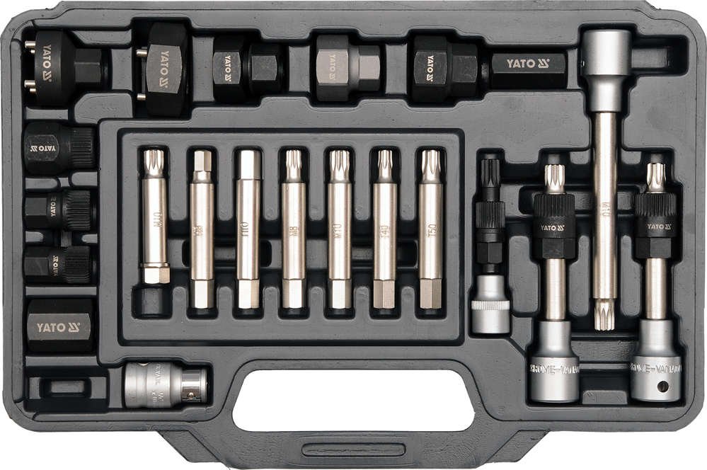 The wrenches are intended for use in a professional automotive service. They enable the simultaneous unscrewing of the pulley mounting bolt (using the appropriate bit) and holding the pulley with the clutch (using a specialized adapter).