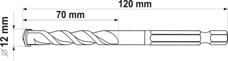 Grąžtas universalus su Hex 6.3 mm (1/4") galu | 12.0 mm (YT-44787)
