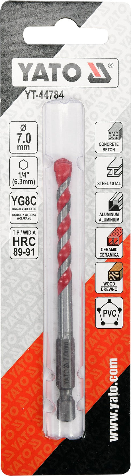 Grąžtas universalus su Hex 6.3 mm (1/4") galu | 7.0 mm (YT-44784)