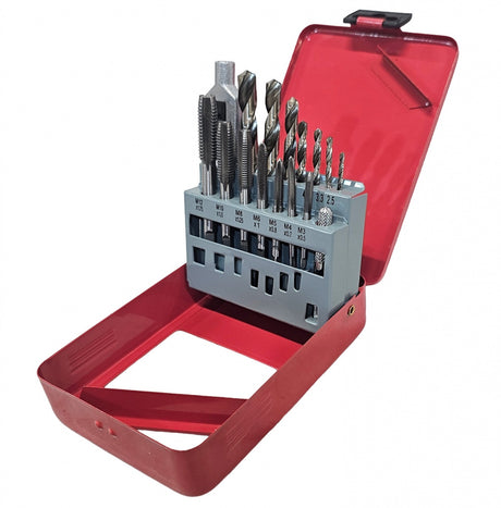 Sriegiklių ir grąžtų rinkinys | su T-rankena | HSS | M3 - M12 / 2,5 - 10,2 mm | 16 vnt. (SK1633)