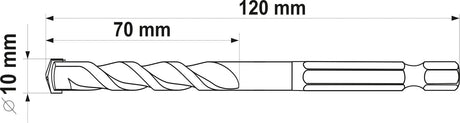Grąžtas universalus su Hex 6.3 mm (1/4") galu | 10.0 mm (YT-44786)