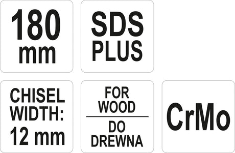 Kaltas medžiui plokščias | Cr-Mo | SDS PLUS | 12 mm (YT-47200)