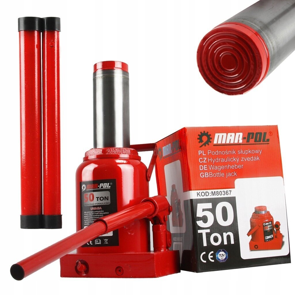 Vienos pakopos hidraulinis teleskopinis keltuvas [domkratas] Mar-Pol M80367 - tai DIY+ klasės prietaisas, skirtas sunkiems kroviniams kelti. Prietaisas turi patogią pernešimo rankeną. Platus pagrindas užtikrinanta stabilumą ir tvirtumą darbo metu. Visos kritinės hidraulinio domkrato vietos sustiprintos, kad būtų ypač tvirtos ir patvarios. Prietaisas turi atleidimo vožtuvą ir apsauginį vožtuvą, apsaugantį nuo perkrovos. Didžiausias bendras keltuvo aukštis su ištrauktu galiniu varžtu ~420 mm. Keltuvas naudojamas sunkvežimių ir pramoninių transporto priemonių servisuose, transporto įmonėse, taip pat namų garažuose.