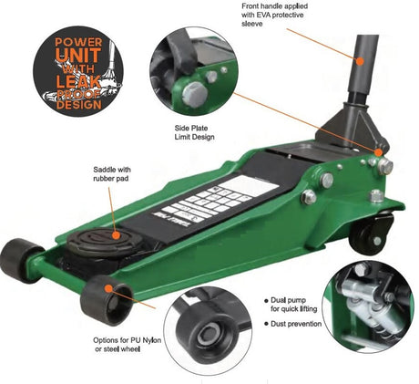 Domkratas ant ratukų | hidraulinis | žemo profilio / dvigubas stūmoklis | 73-500 mm | 3 t. (LFJ35-L)