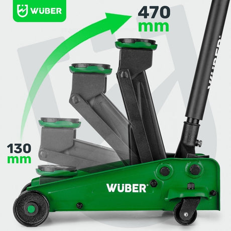 Domkratas su ratukais pažemintas | dvigubas stūmoklis | greitas kėlimas | 70- 510 mm | 2.5T (LFJ3B)