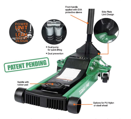 Domkratas su ratukais pažemintas | dvigubas stūmoklis | greitas kėlimas | 85- 510 mm | 3.0T (FLJ35P)