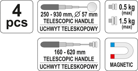 Teleskopinio veidrodžio ir magnetinio rinkiklio rinkinys | 4 vnt. (PM4S)