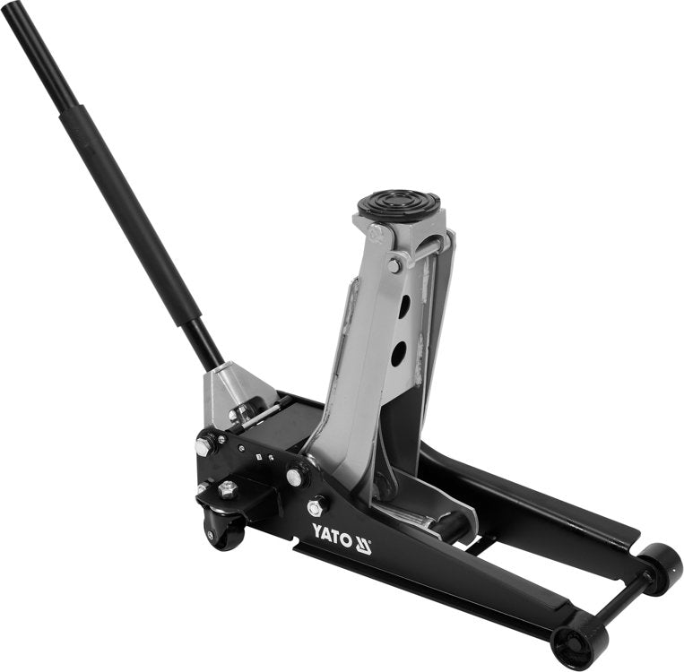 Žemo profilio automobilinis hidraulinis keltuvas [domkratas] YATO YT-17207 - tai PRO klasės prietaisas, skirtas sunkiems kroviniams kelti. Neslystanti, guma dengta rankena. Tvirta konstrukcija ant keturių ratukų, iš kurių 2 - pasukami. Dviejų stūmoklių hidraulinė pompa užtikrina greitą kėlimą. Mažas pradinis aukštis leidžia domkratą pakišti po bet kuriuo automobiliu. Prietaisas ypač naudingas žemiems sportiniams automobiliams. Hidraulinis domkratas su ratukais tinkamas naudoti automobilių servisuose, padangų remonto dirbtuvėse, techninio aptarnavimo stotyse ar garažuose.