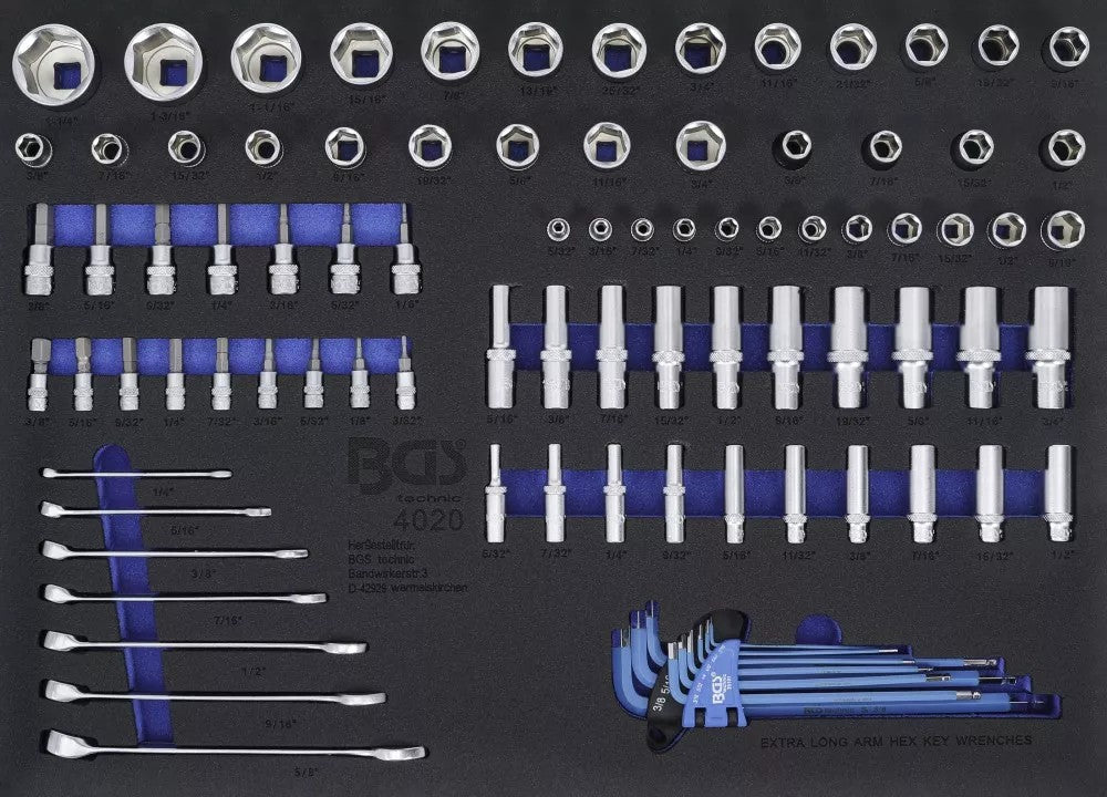 3/3 įrankių dėklas: Galvutės / kombinuoti raktai | Coliniai dydžiai | 90 vnt. (4020)