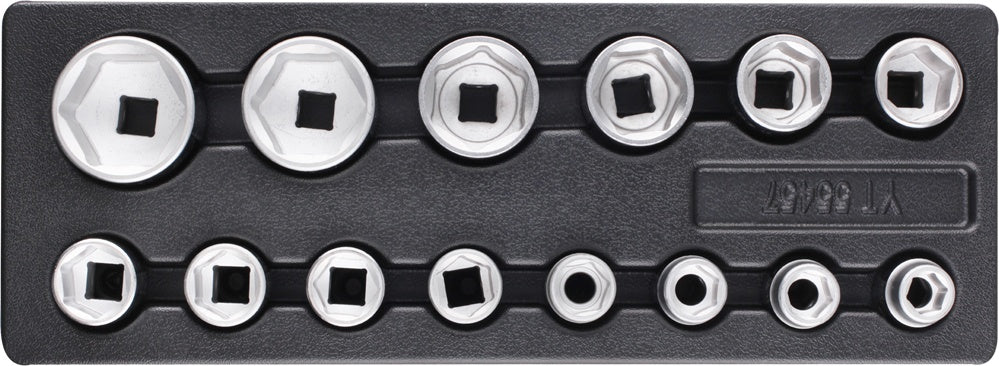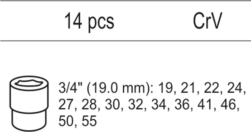 Įrankių dėkle YATO YT-55457 sukomplektuoti PRO klasės 3/4" galvutės, pagamintos iš chromo vanadžio (CrV) įrankių plieno: