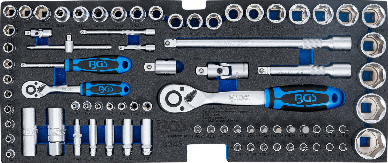 Įrankių dėklas iš 3312 pozicijos: galvučių rinkinys | 12,5 mm (1/2") + 6,3 mm (1/4") | 78 vnt. (3345)