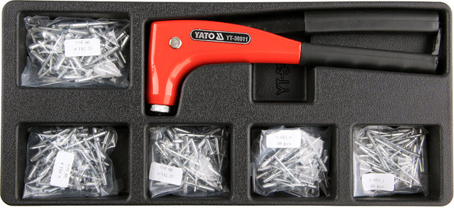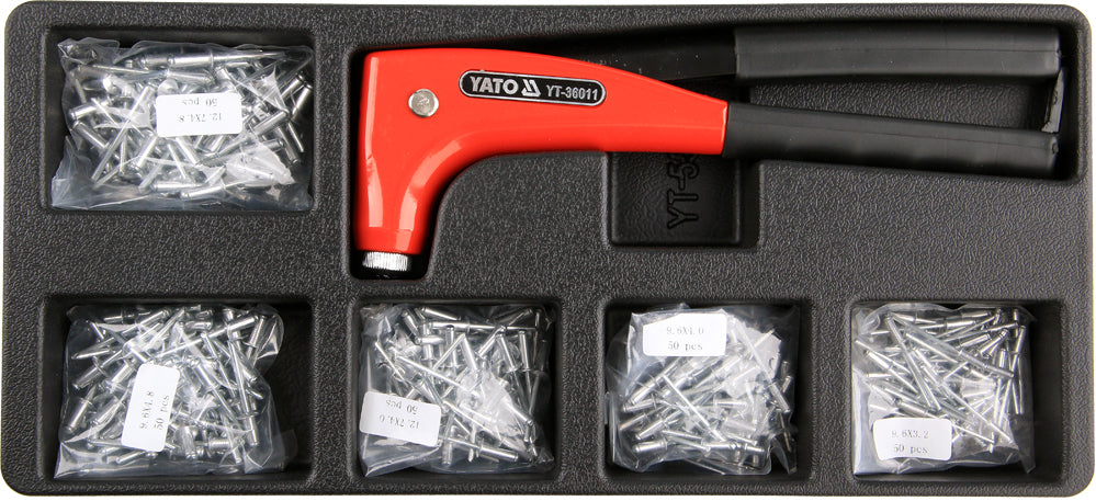 Įrankių rinkinys į vežimėlius | kniediklis su kniedėmis (YT-55466) yra užsakomoji prekė, ją išsiųsime per 3-4 savaites.