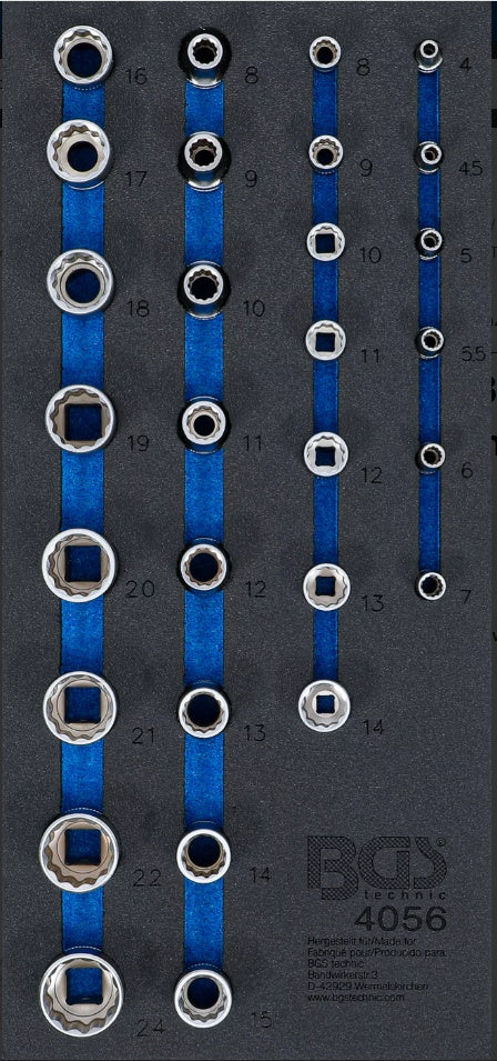 Įrankių dėklas 1/3: galvutės 12 kampų | 6.3 mm (1/4") ir 12.5 mm (1/2") | 29 vnt. (4056)