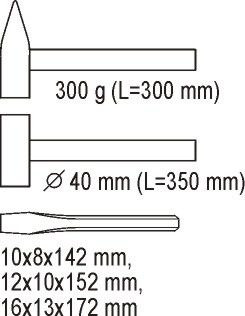 Įrankių rinkinys į vežimėlius-kaltai ir plaktukai (YT-5540)