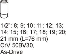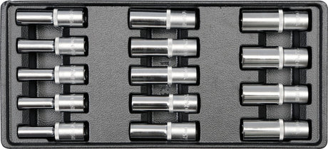 Įrankių rinkinys į vežimėlius | ilgos galvutės 1/2" | 8-21 mm | 14 vnt. (YT-5539)