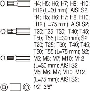 Įrankių rinkinys į vežimėlius - Hex ir Torx raktai, galvutės ir antgaliai 31vnt. (YT-55451)
