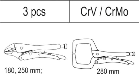 Įrankių rinkinys su dėklu | fiksuojamų replių rinkinys | 3 vnt. (YT-55472)