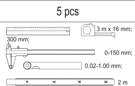 Įrankių rinkinys į vežimėlius - matavimo įrankių rinkinys | 5 vnt. (YT-55474)
