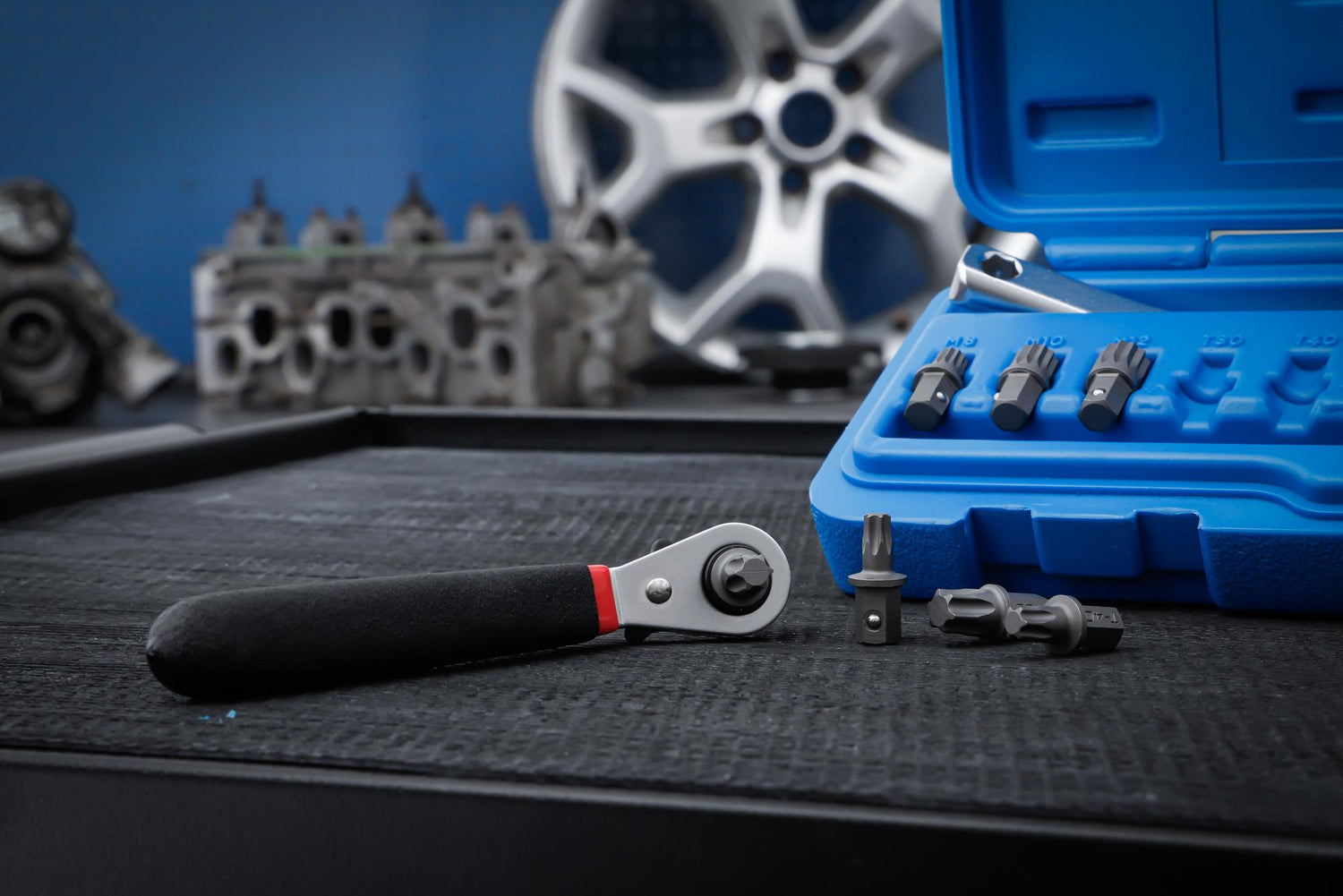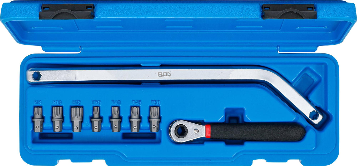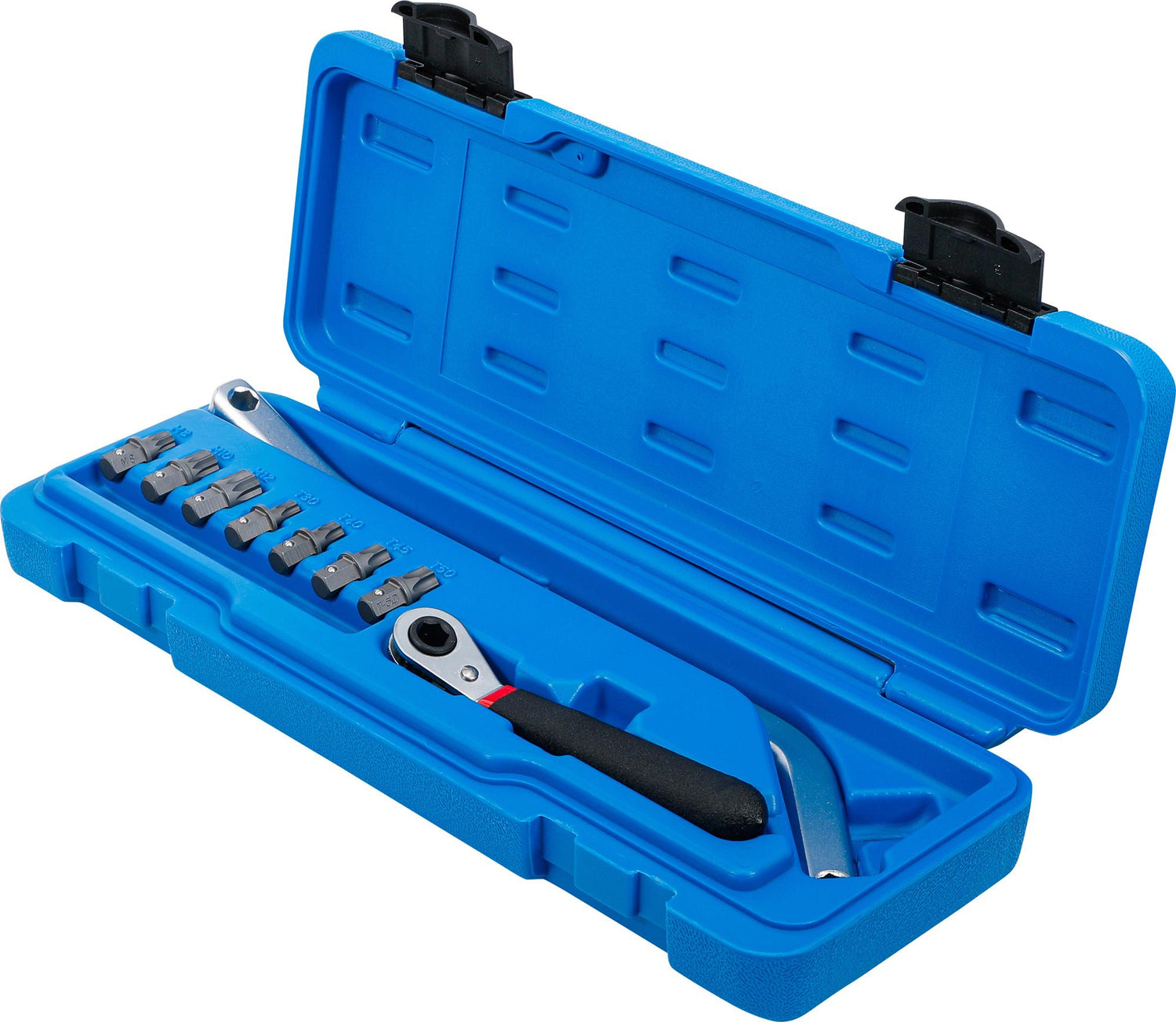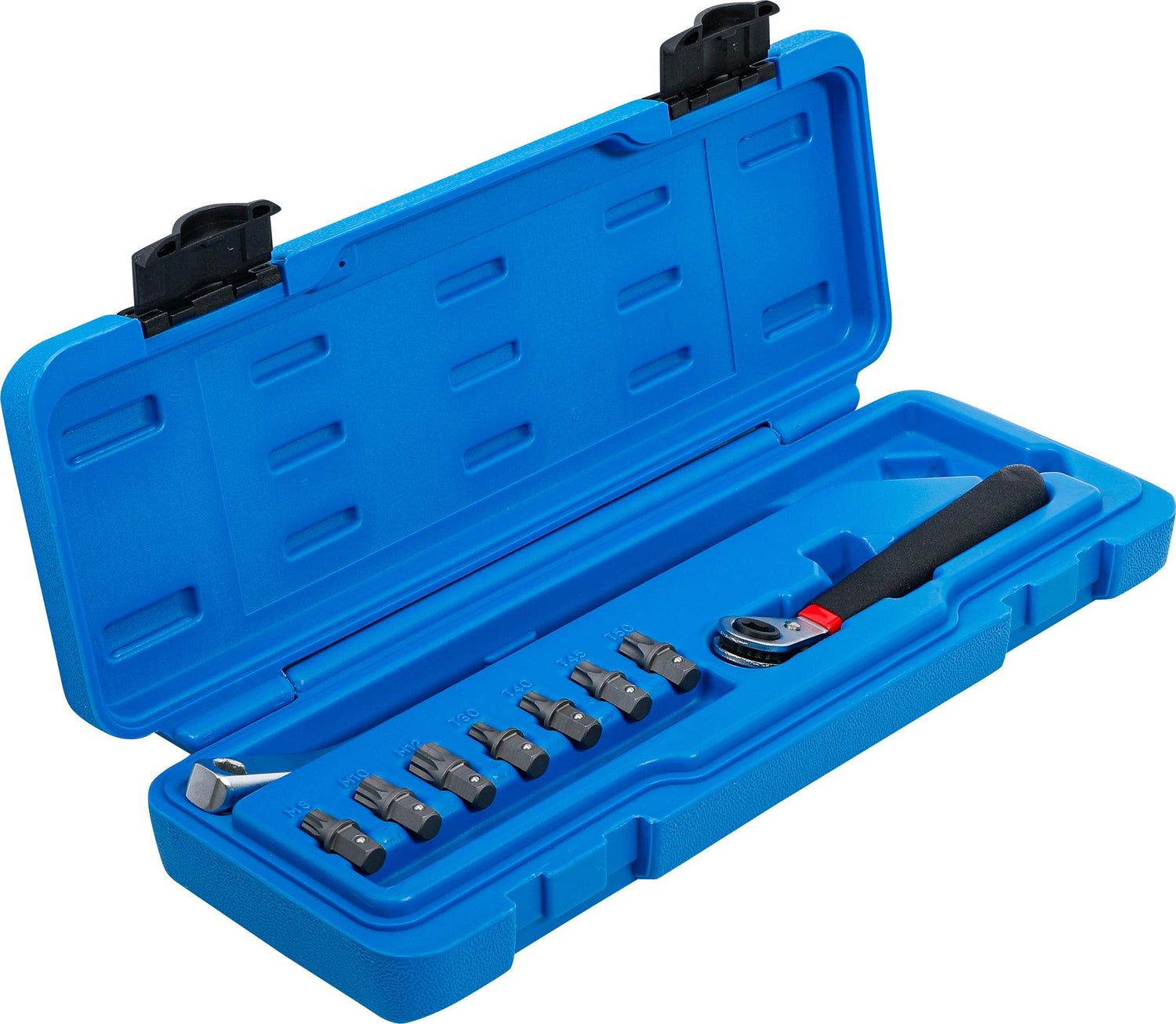 includes the following bits with retaining ball and hexagon drive: for Spline screws M8, M10 and M12, as well as for T-Star screws T30, T40, T45 and T50