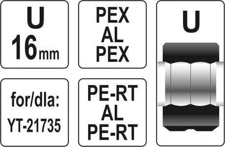 Indėklas U 16 mm presavimo replėms YT-21735 (YT-21740)