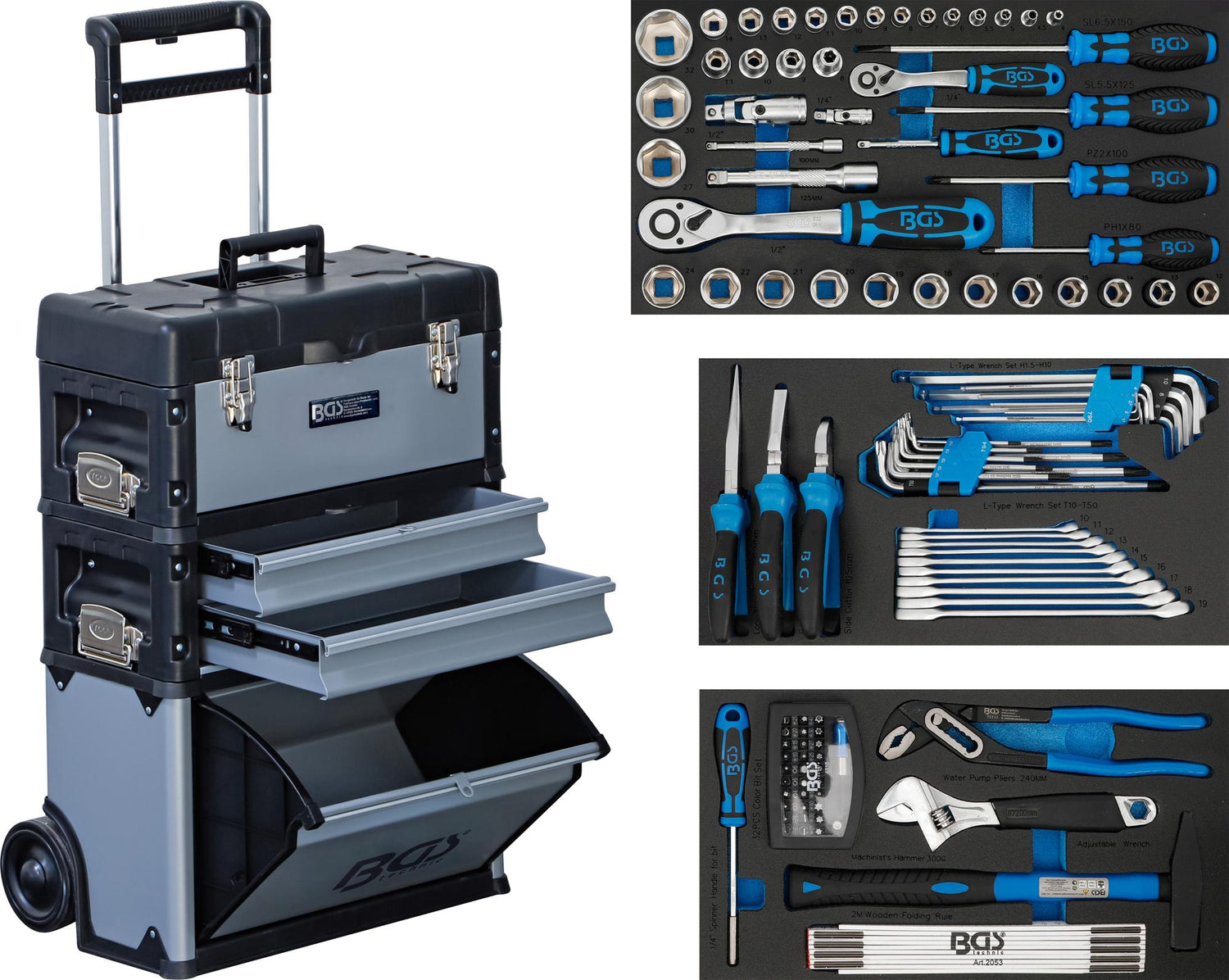 Dėžė įrankiams ant ratukų | su įrankiais | 111 vnt. (15506)