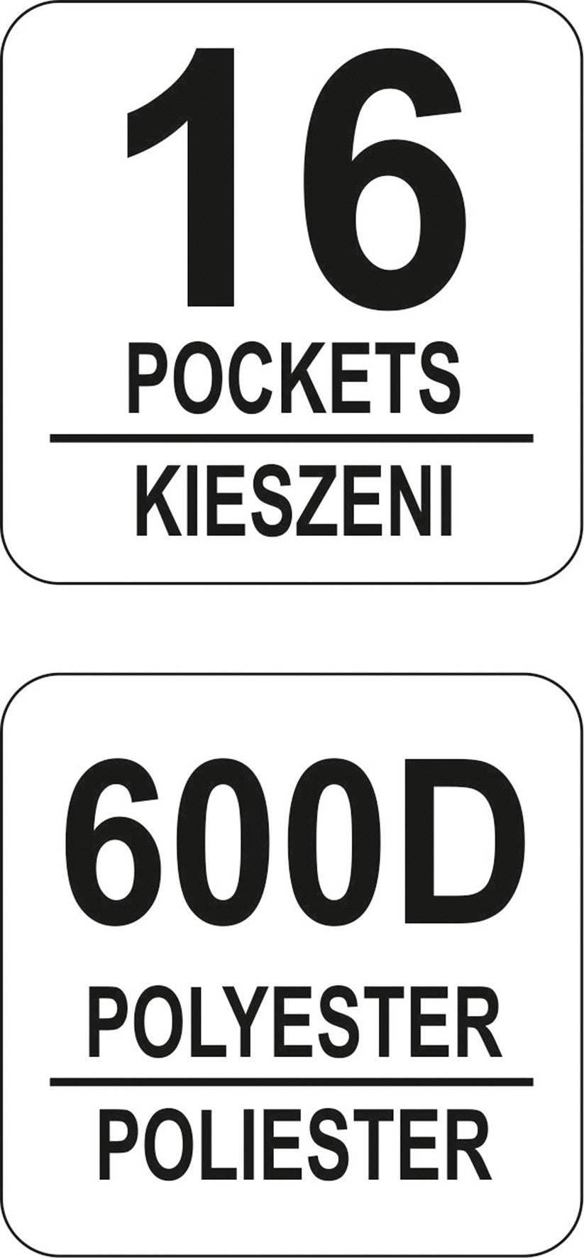 16 POCKETS, 600D POLYESTER, REINFORCED SIDES AND BOTTOM, SHOULDER STRAP, HANDLE: NYLON STRAP