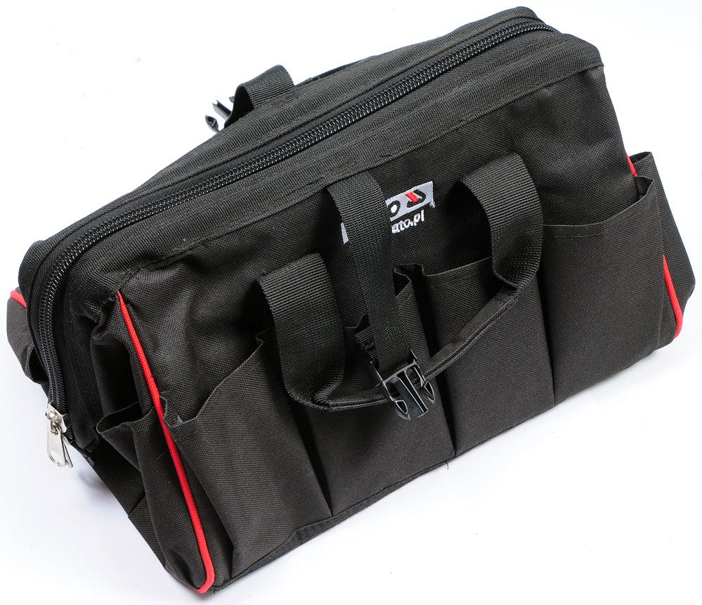 Robust bag with reinforced construction. Designed to carry more tools. It has large pockets for convenient placement of small tools, lockable with a zipper. The bag is packed with a folding chair in such a way that when sitting on it you can use the bag as a handy workshop.