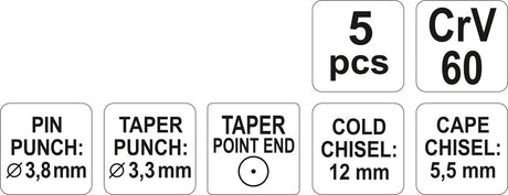 Kaltų ir išmušėjų rinkinys | 5 vnt. (YT-4695)