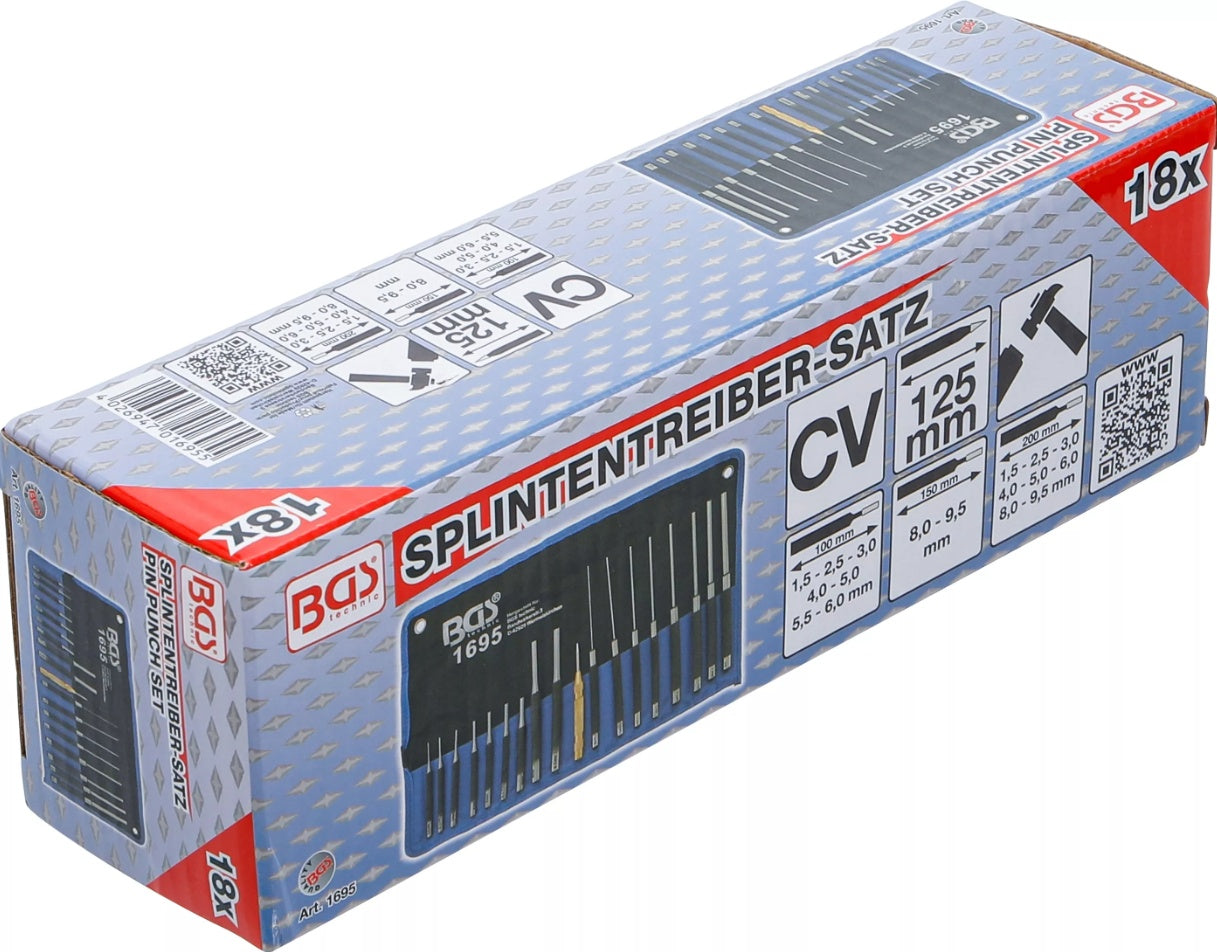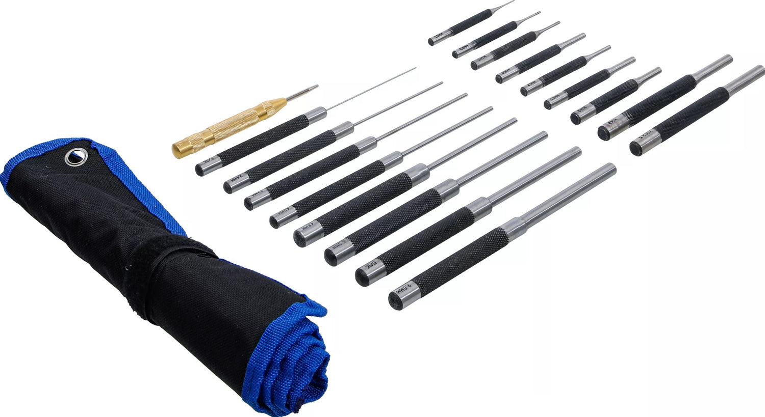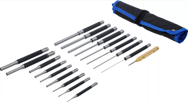 Išmušėjų rinkinys | 100-150-200 mm | 1,5 - 9,5 mm | įskaitant centro žymeklį | 18 vnt. (1695)