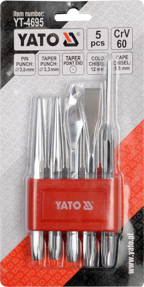 Kaltų ir išmušėjų rinkinys | 5 vnt. (YT-4695) yra užsakomoji prekė, ją išsiųsime per 3-4 savaites.