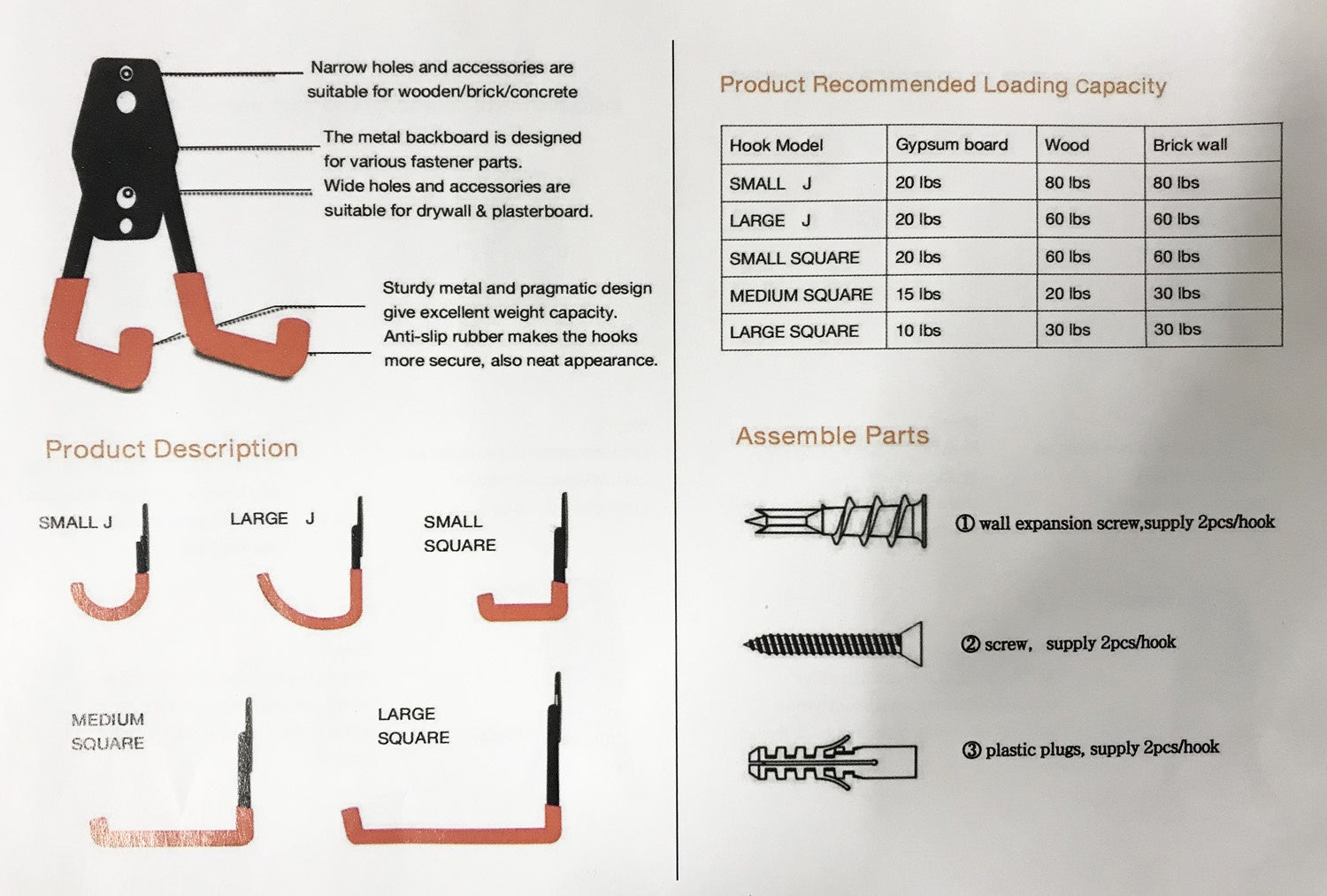 Easy to install: The notches and spikes on the back of the board make it easier to fix or adjust the hook board. The box is equipped with screws and wall plugs, which can be installed on walls, joists, bricks, and more.