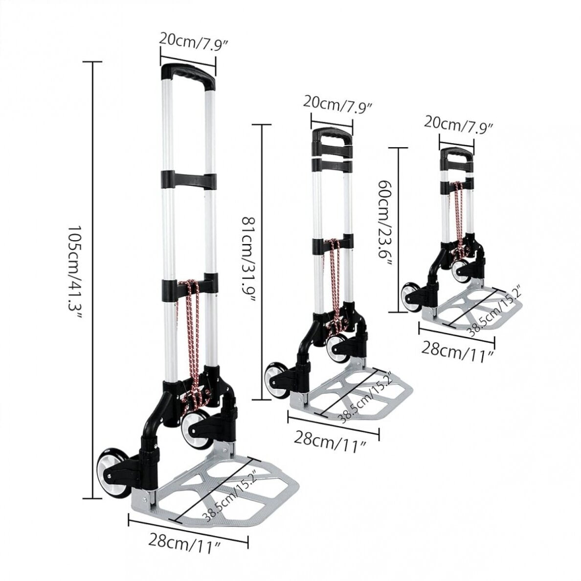Sulankstomas transportavimo vežimėlis su teleskopine rankena RA-60A  - tai tvirtas, lengvas ir patogus DIY klasės prietaisas, pagamintas iš sustiprinto aliuminio ir plieno. Didelė pakrovimo plokštė leidžia patogiai pervežti įvairaus dydžio dėžes, dėžutes ar konteinerius. Greito sulankstymo sistemos pagalba plokštę galima sulankstyti vienu judesiu. Išskleista teleskopinė rankena su fiksavimo sistema pasiekia 1050 mm ilgį. Kompaktiška konstrukcija, dėl kurios vežimėlį galima lengvai sandėliuoti ar transportuoti, telpa į bet kurio automobilio bagažinę. Vežimėlio ratai, pagamninti iš termoplastinės gumos [TPR], yra atsparūs dilimui.