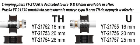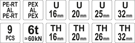 Rankinis hidraulinis presas presavimui PEX-AL-PEX plus 8 jungiamosios detalės (YT-21735)