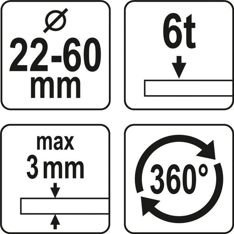 Hidraulinis skylių pjaustymo įrankis | 22-60 mm | 360 laipsn. (YT-18907)