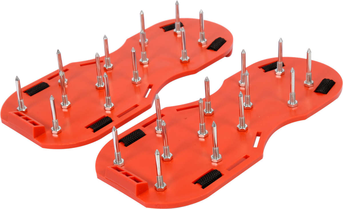 The soles are used for free movement during the preparation of concrete screeds or floors. The shoes do not leave deep marks and prevent slipping, and are also used in gardening to aerate lawns.