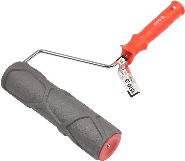 Pressed and guided on the surface of a plastered wall, it squeezes a deep pattern into fresh plaster. The dimensions of the roller are 230 x 70 mm.