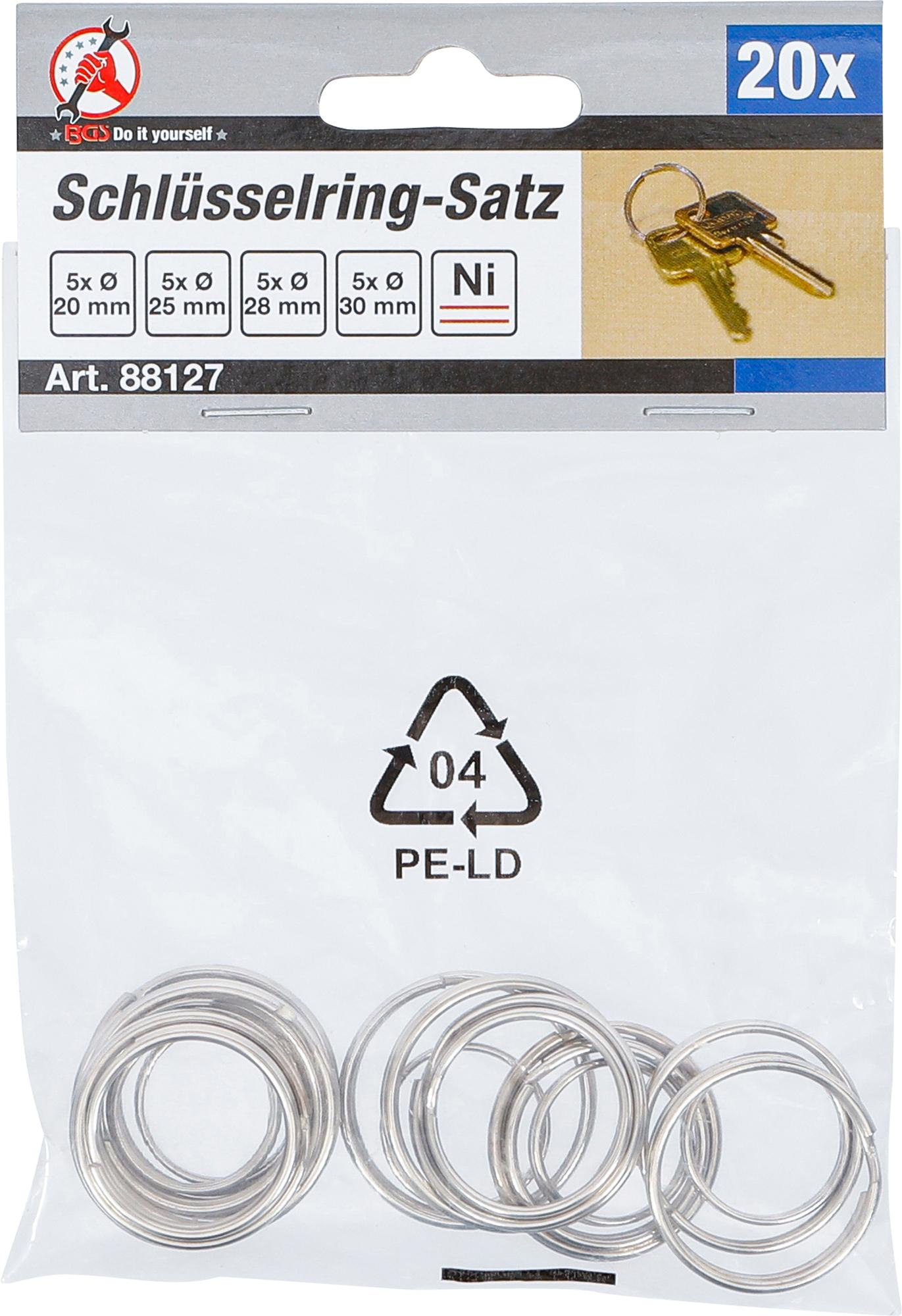 5 key rings, external diameter 20 mm, internal diameter 17.5 mm