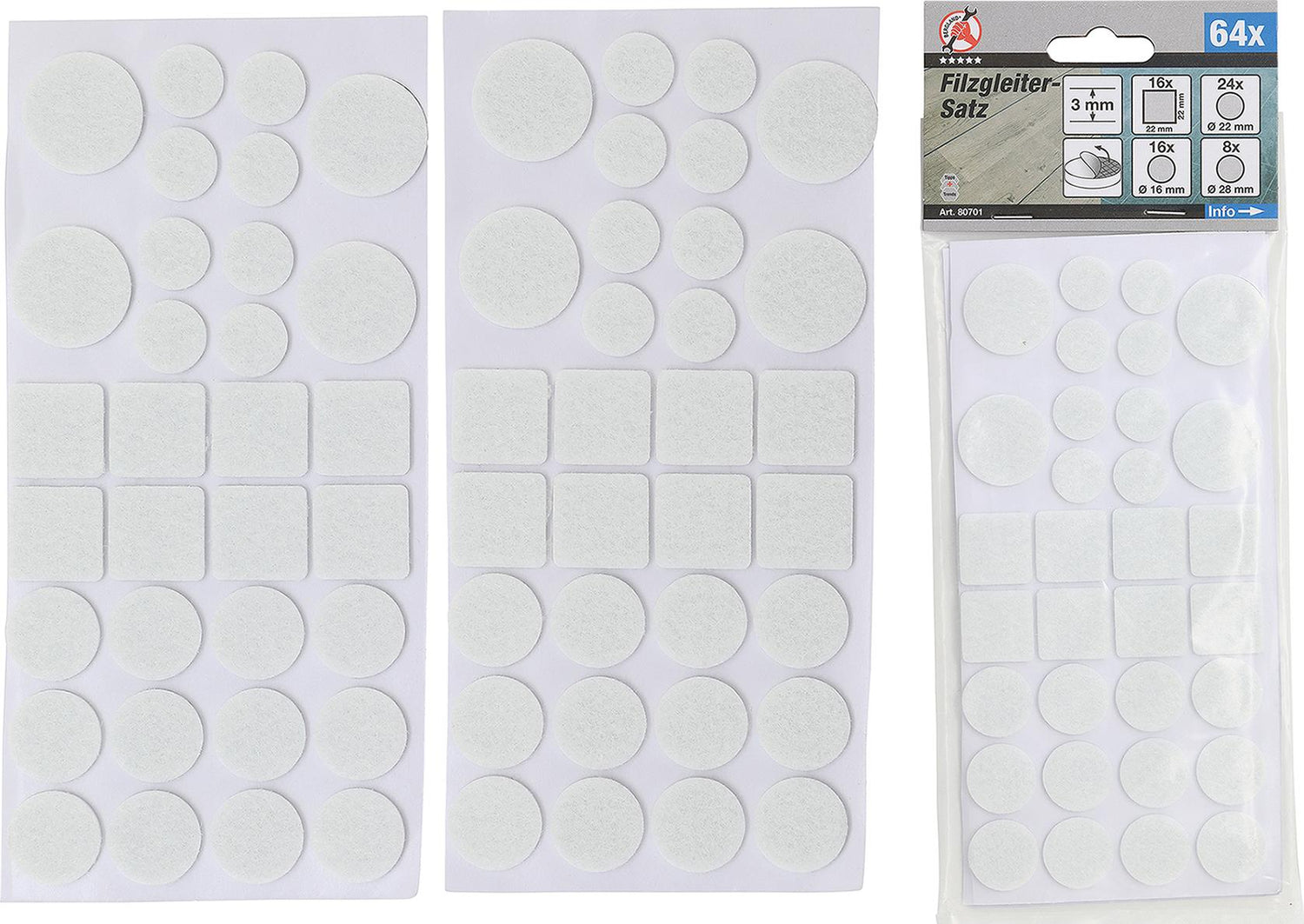 16 felt pads, round, 16 mm